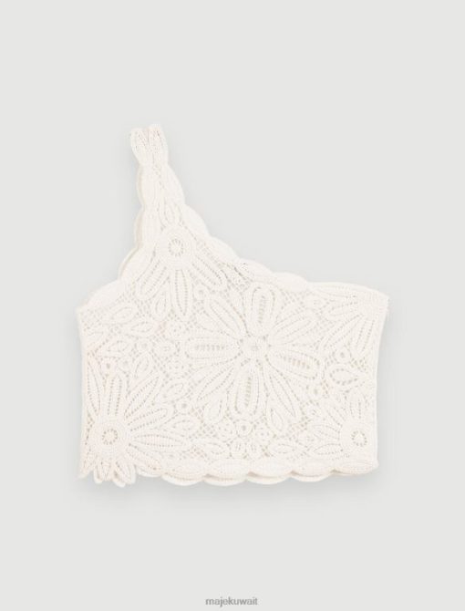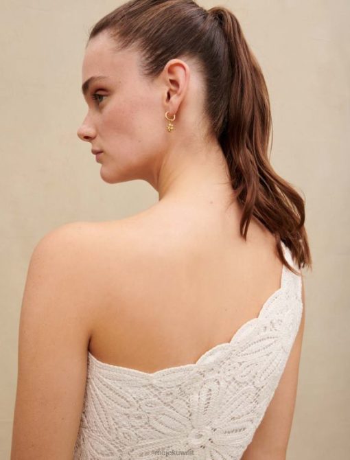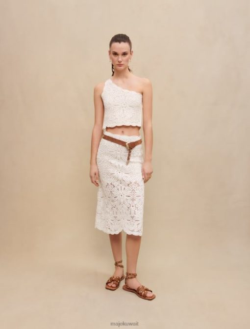 مصنوعة بالكامل من الكروشيه والدانتيل، هذه البلوزة القصيرة المخرمة والمبطنة، تتميز بتطريزات زهور شفافة وحمالة غير متماثلة. ارتديها مع تنورة مطابقة لتعطي مظهر فستان، وتبرز الخصر بجمل حزام وصنادل مرصعة متطابقة. للحصول على لمسة من الألوان، عززي هذا الفستان بمجوهرات من تعاون maje x eliou الحصري.