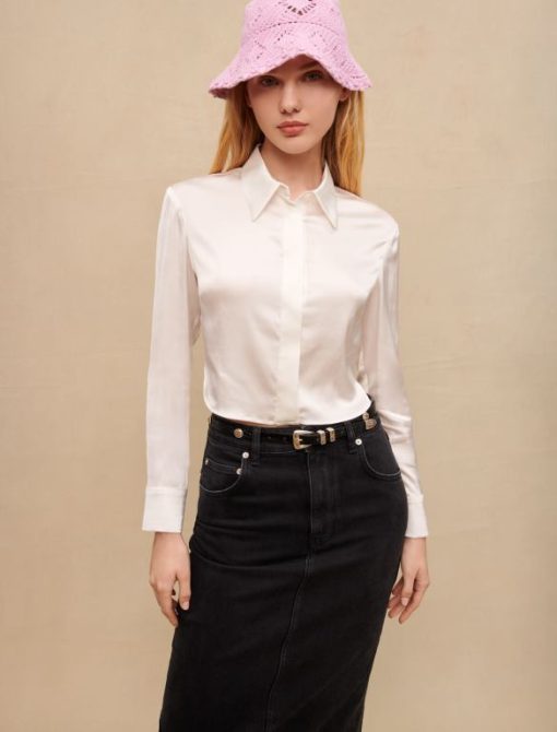 هذا الموسم، تم تحديث القميص ذو تصميم الساتان في نسخة قصيرة وانسيابية وخفيفة الوزن. يتميز بأكمام طويلة، وياقة كلاسيكية، وفتحة أزرار مغطاة. مصمم ليكمل مظهرك الأكثر أناقة، كما أنه يتناسب بشكل جيد مع الدنيم الباهت للحصول على مظهر أكثر كاجوال.