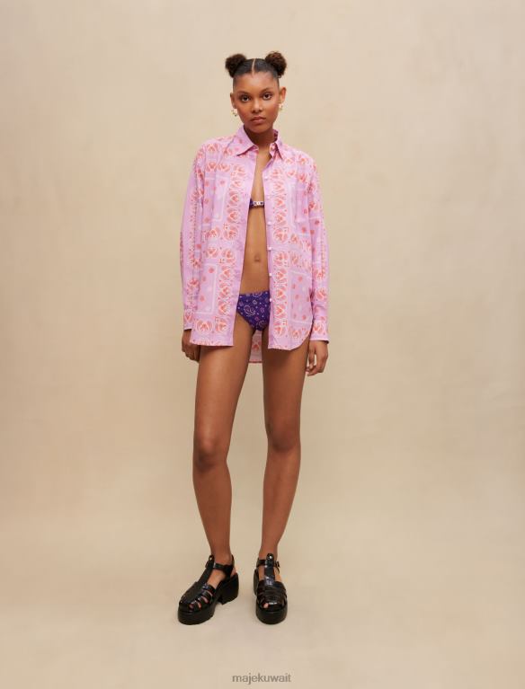 Maje قميص بطباعة بيزلي ملابس باندانا الوردي نحيف JP08B151