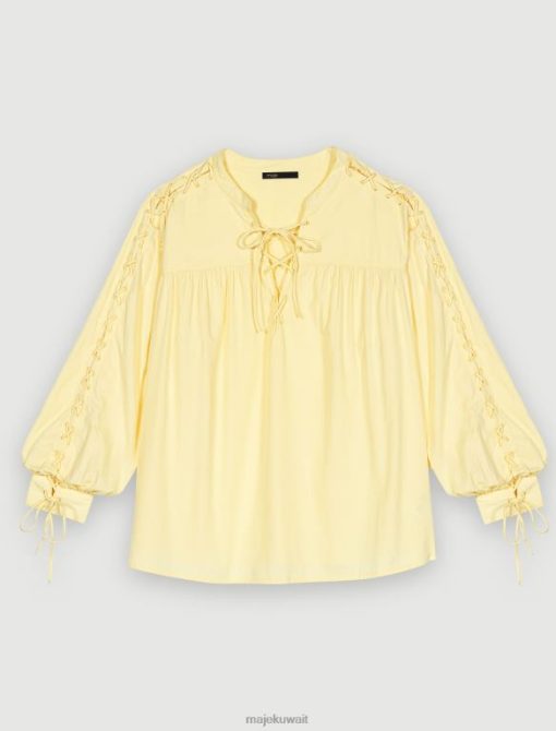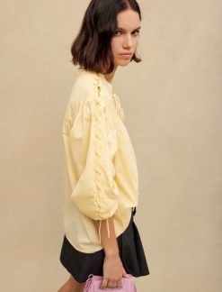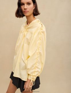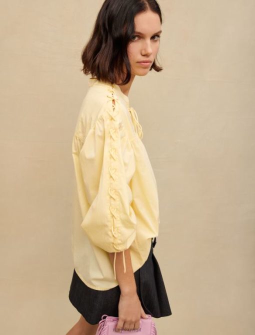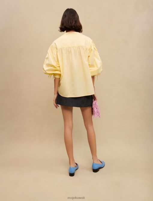 Maje قميص قطني مزين بأزرار على طراز العصور الوسطى ملابس أصفر نحيف JP08B339