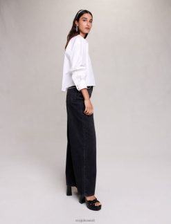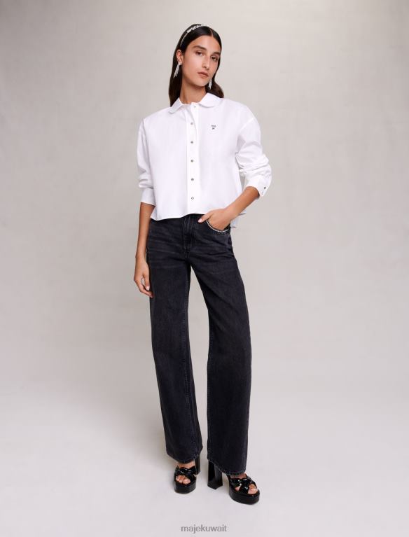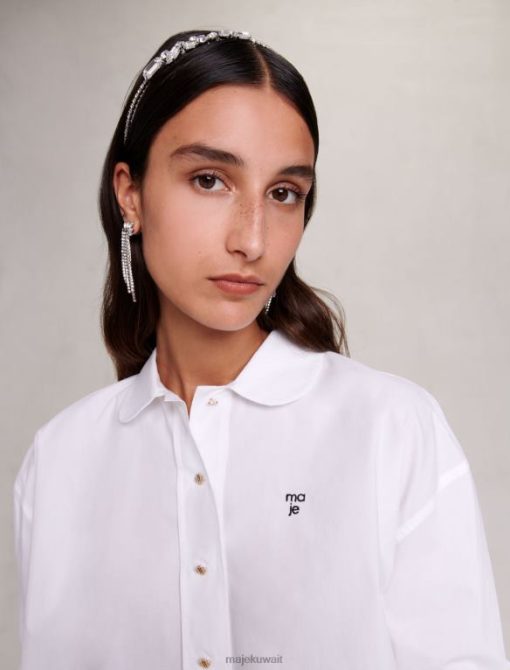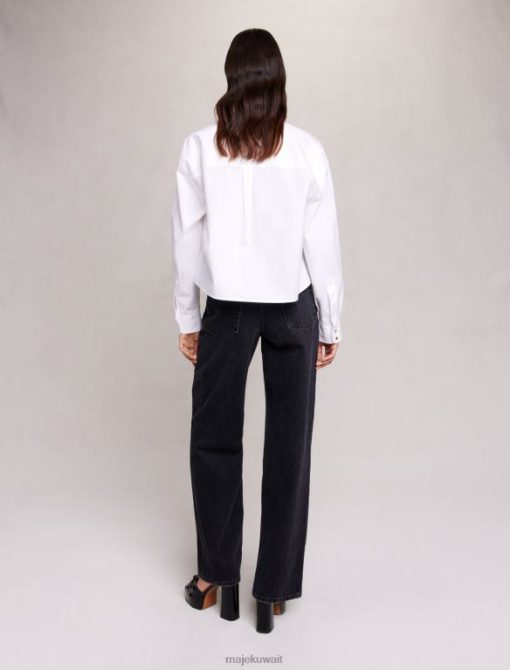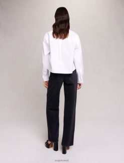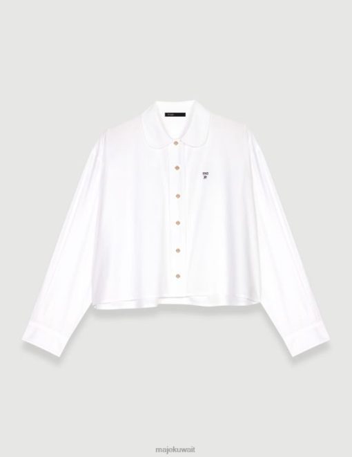 Maje قميص قطن قصير ملابس أبيض نحيف JP08B43