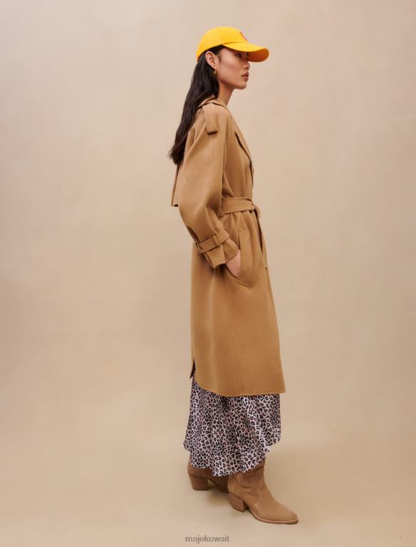 يُعتبر هذا المعطف الصوفي لمسة جديدة على قطعة أساسية في خزانة ملابس النساء: معطف الترنش. هذا الموسم ينضح بالأنوثة بحزامه الذي يشكل الصورة الظلية والأصفاد الجميلة ذات الإبزيم. يتميز القفل المزدوج الصدر بـ 8 أزرار في الأمام.