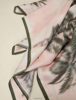 أكملي إطلالتك بلف هذا الوشاح الحريري حول رقبتك أو مقبض حقيبتك المفضلة. ويتميز بطبعة نجمة الموسم: شجرة النخيل.