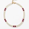 بالتزامن مع مجموعة “الأرجواني الاستوائي” الجديدة، صممت ماجي وإليو مجموعة من المجوهرات المصممة خصيصًا لتناسب المظهر الأساسي لهذا الموسم وتضفي لمسة عليه. وهو تعاون حصري مستوحى من أيام الصيف الطويلة و مملوءة بلمسة مرحة. كل قطعة في المجموعة فريدة من نوعها، ومصنوعة يدويًا في ميامي، وتعكس رؤية رؤية مصممي إليو: تصميم قطع حرفية تحكي قصة ويمكن لكل شخص أن يناسبها بطريقته الخاصة. هذه الأقراط الحلقية المطلية بالذهب والمزينة بقلادة صدفية محاطة بخرزات صغيرة من عرق اللؤلؤ، ستكون اللمسة النهائية المبهرة لملابسك الصيفية. مصنوعة يدوياً بالكامل، وستضفي لمسة شخصية على مظهر مسائي أكثر رصانة وأناقة بنفس سهولة المظهر النهاري الملون والأصيل. اكتشف جميع المنتجات من هذا التعاون الحصري، بما في ذلك القلائد التي يمكن ارتداؤها مع بعضها البعض والأقراط المصنوعة من الخرز الملون. .